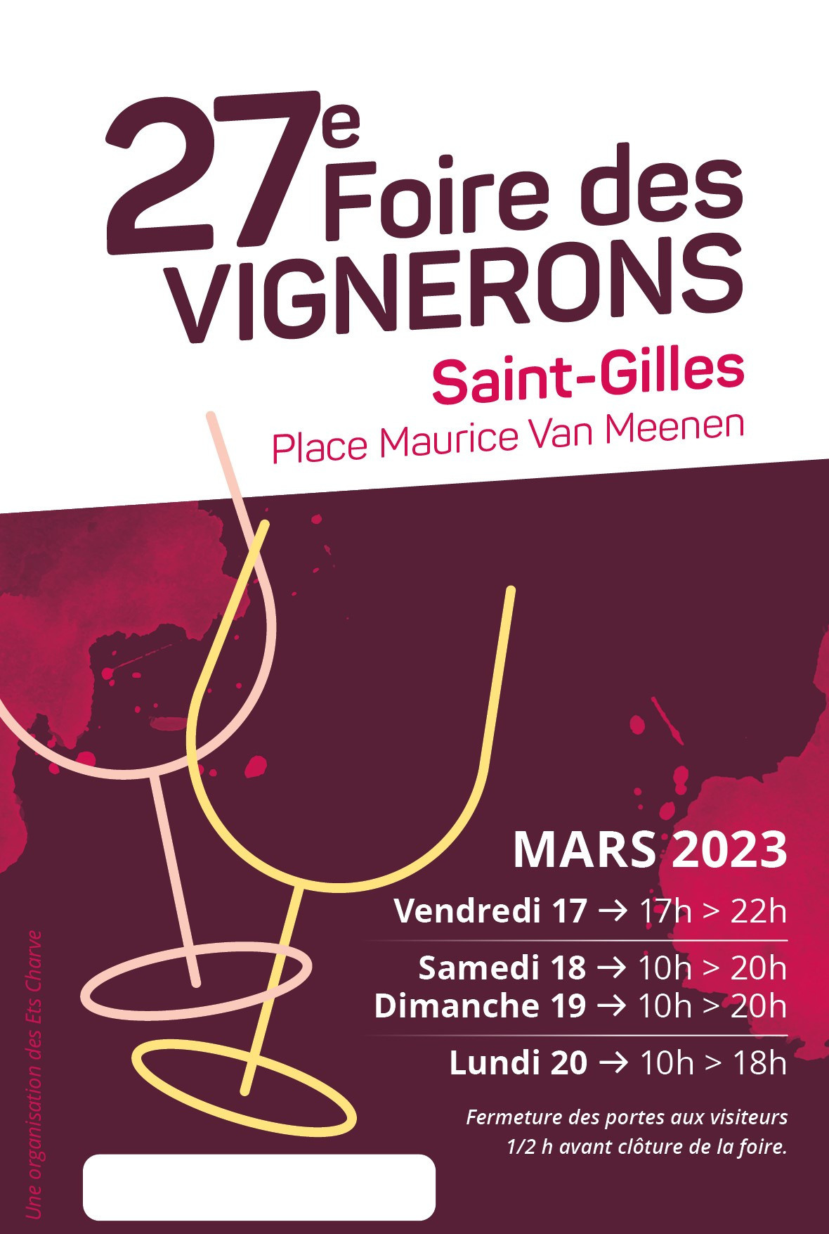 Après 3 années sans le traditionnel salon des Vignerons de St Gilles, nous voilà de retour en Belgique. Nous vous retrouverons à partir de 17h le vendredi 17 Mars jusqu'au lundi 20 Mars place Maurice Van Meenen. Nous vous propserons notre gamme de vins habitulelle avec quelques nouveautés. Si vous souhaitez nous y rendre visite laissez nous vos coordonnées dans la fiche de contact et nous vous enverrons une invitation.